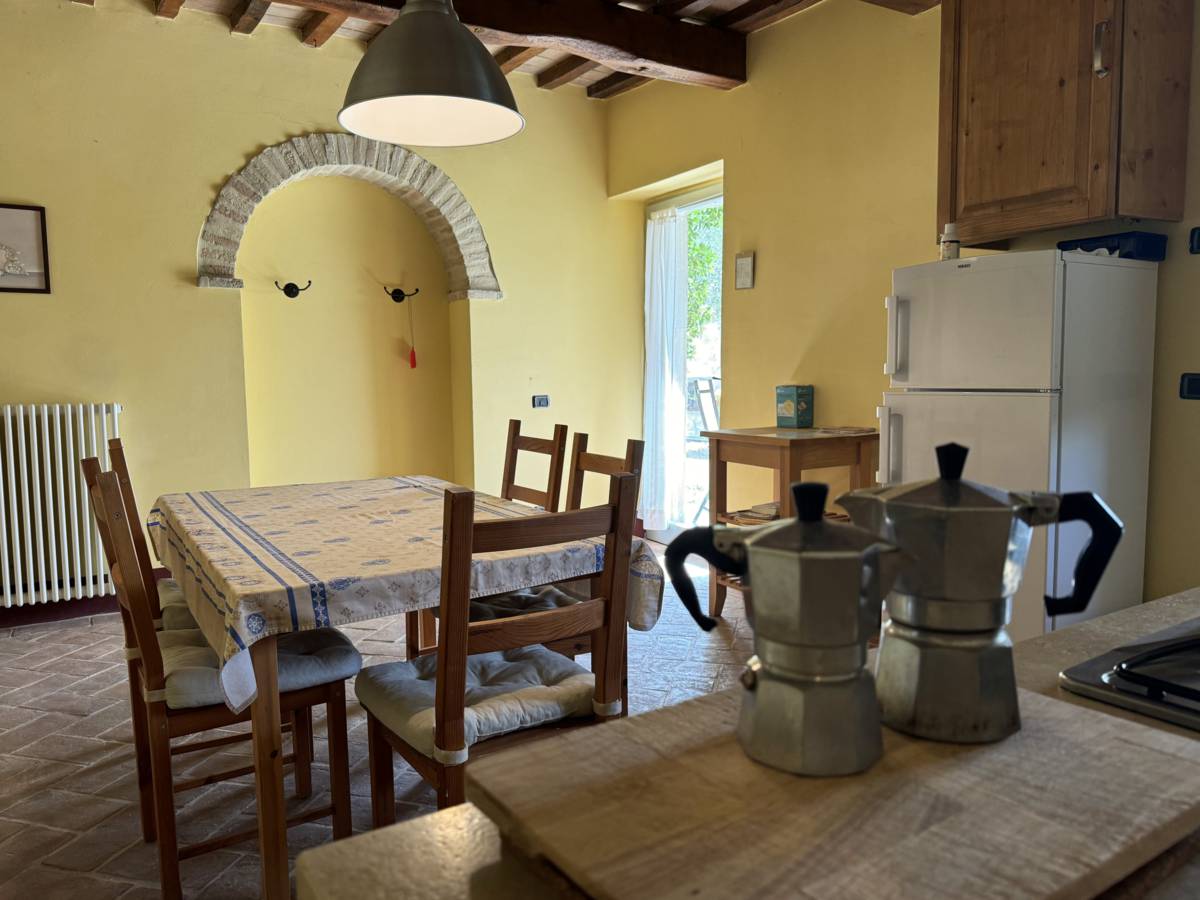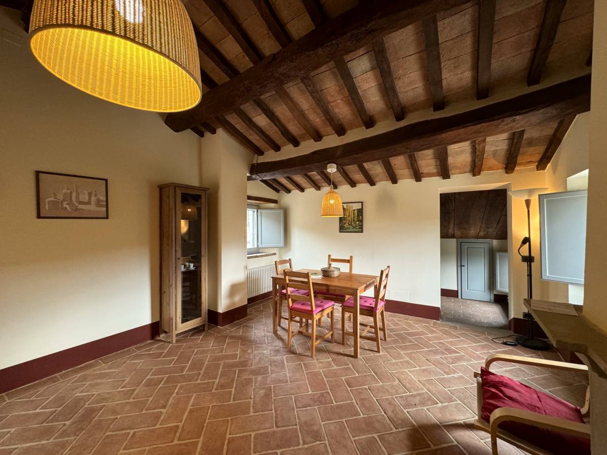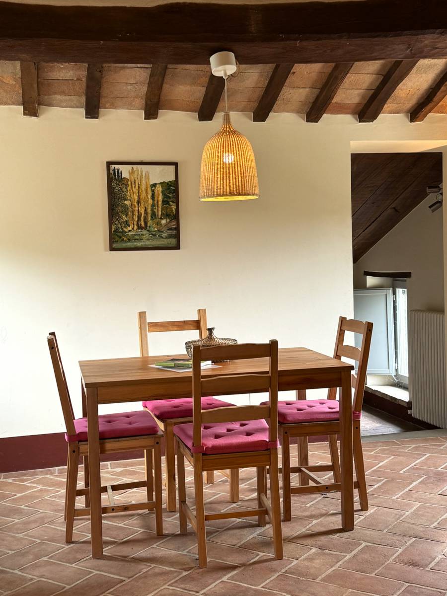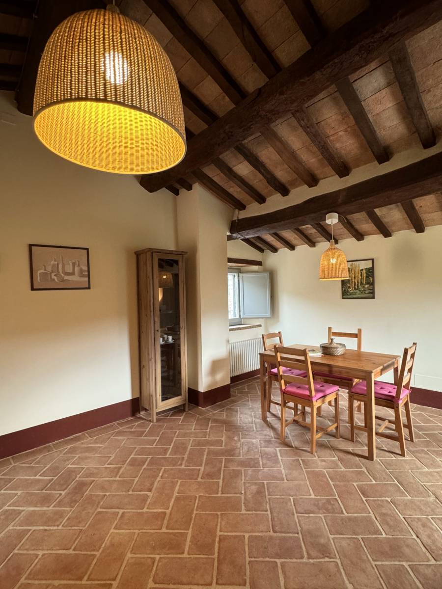 The interiors of the Casale “Belvedere” are characterized by wooden beams and terracotta floors, which give a rustic and welcoming atmosphere.