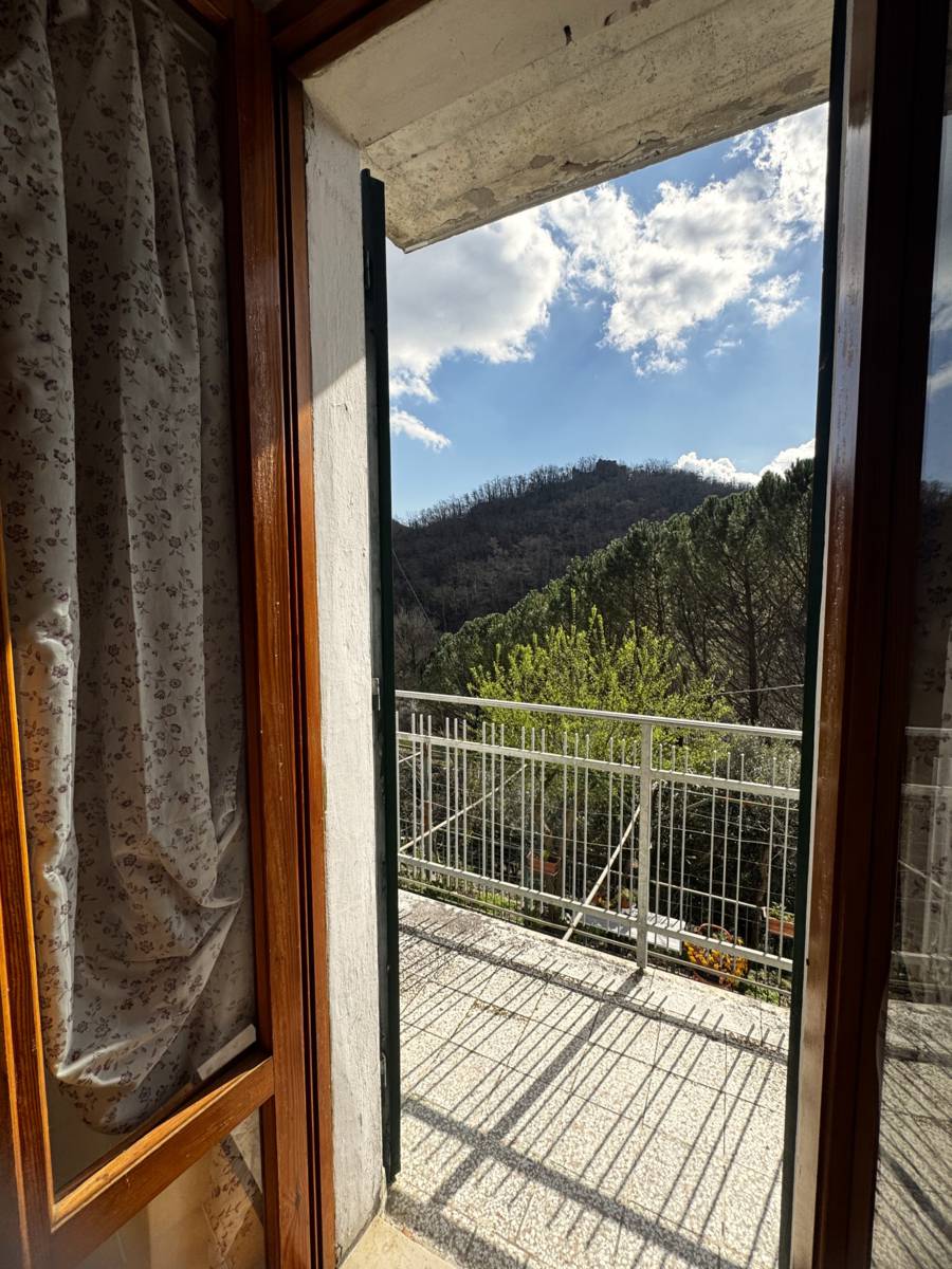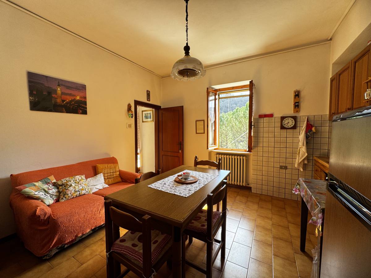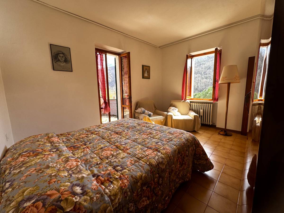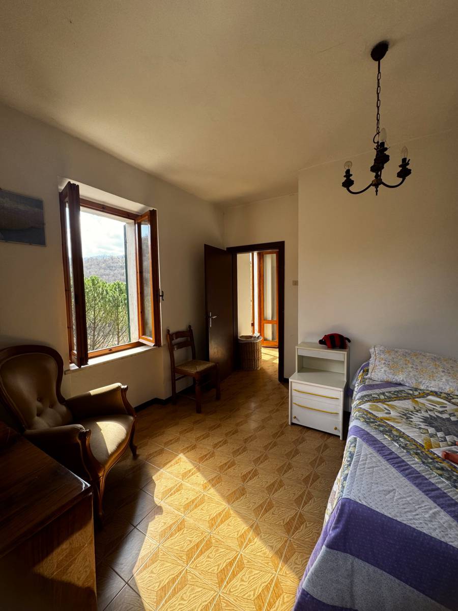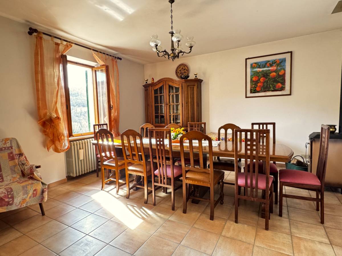 An internal staircase leads to the first floor, which features a bright dining room and a double bedroom with a large terrace, offering views of the countryside.