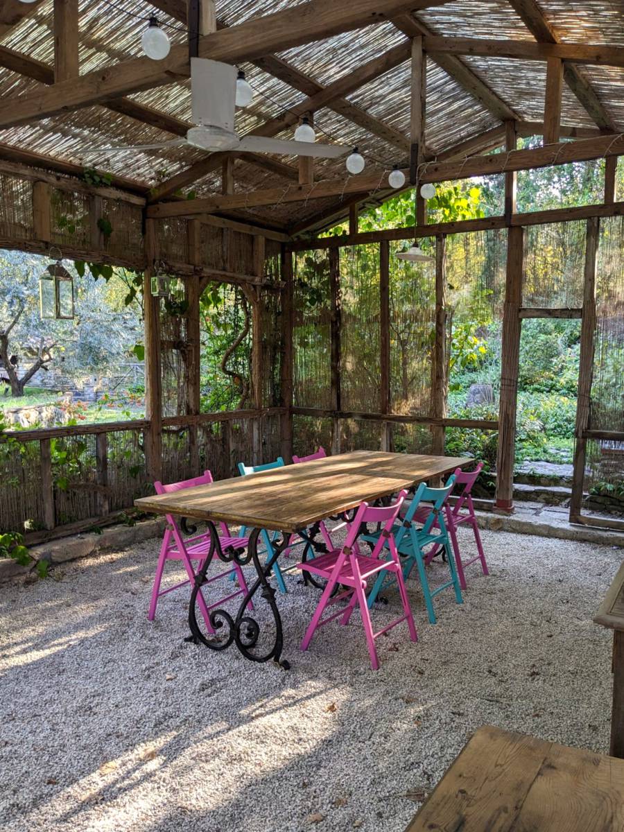 The kitchen, the true heart of the home, is surrounded by a porch and veranda, creating a seamless connection between the interior and exterior: an ideal space for elegant dinners, social gatherings, or simply reading a book surrounded by the tranquil greenery.
