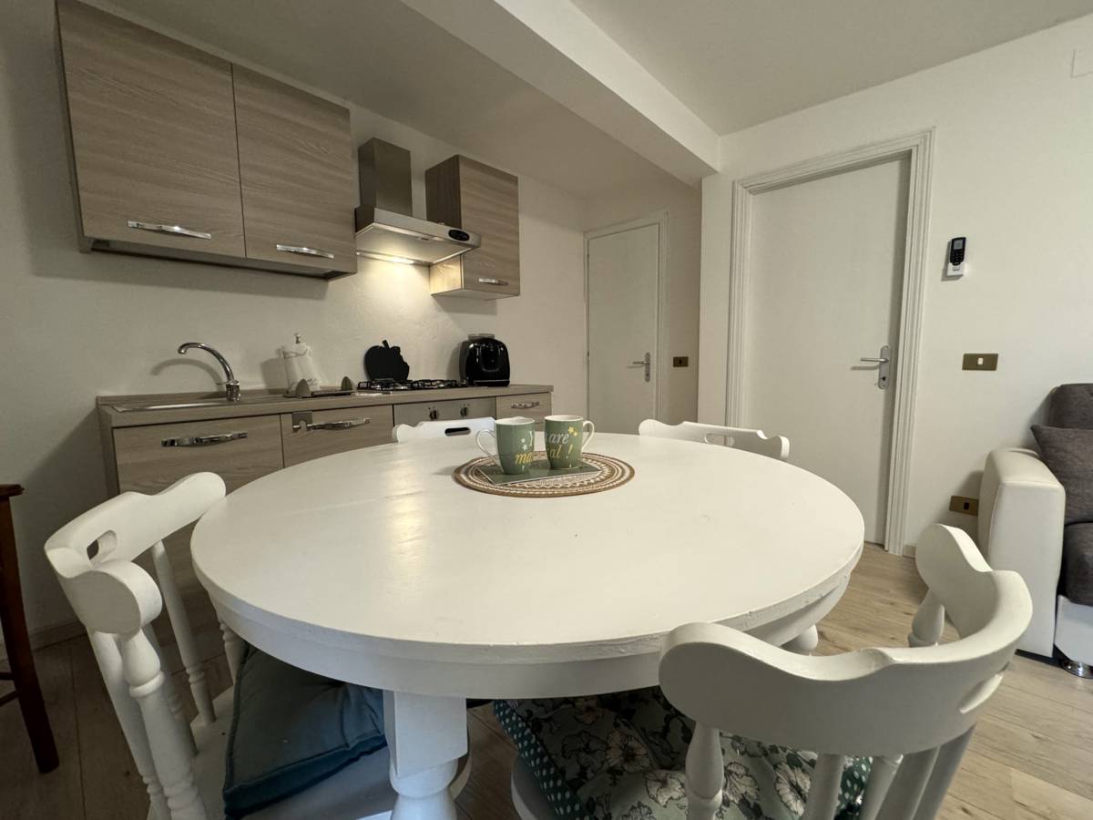 Situato al piano terra con ingresso indipendente, l’appartamento offre un affaccio sul giardino condominiale, creando un’atmosfera riservata e accogliente.